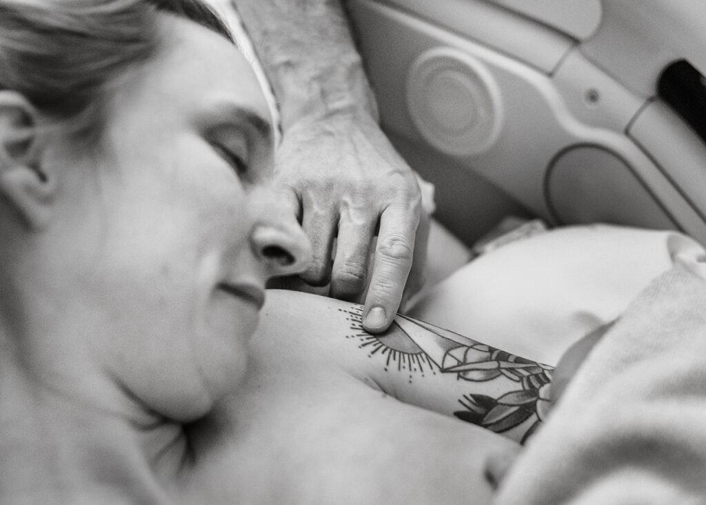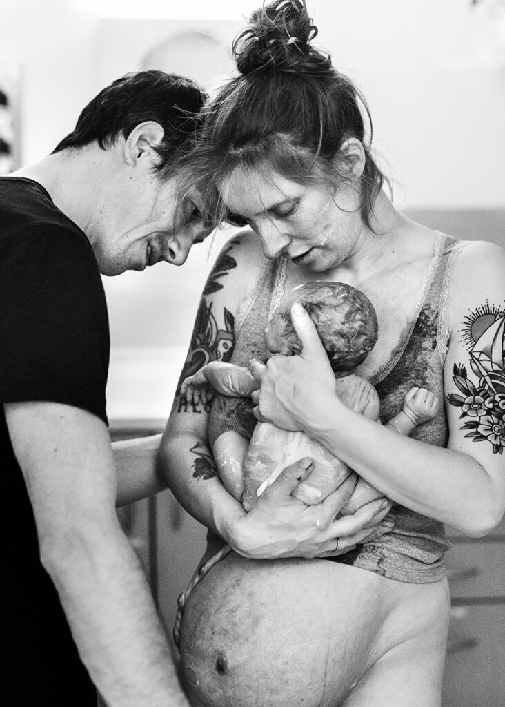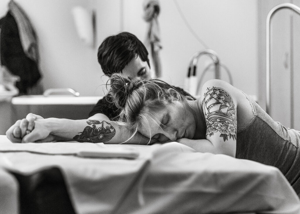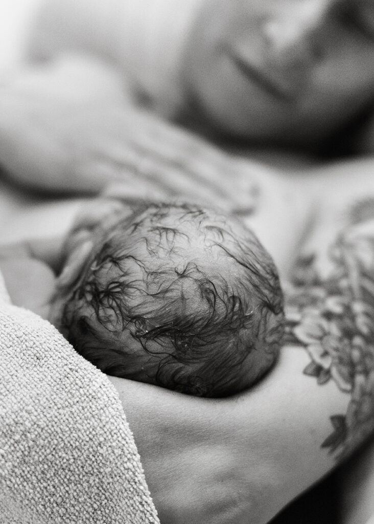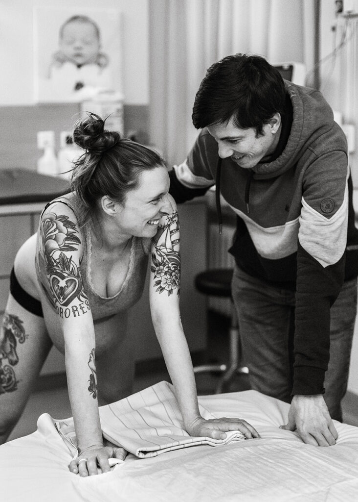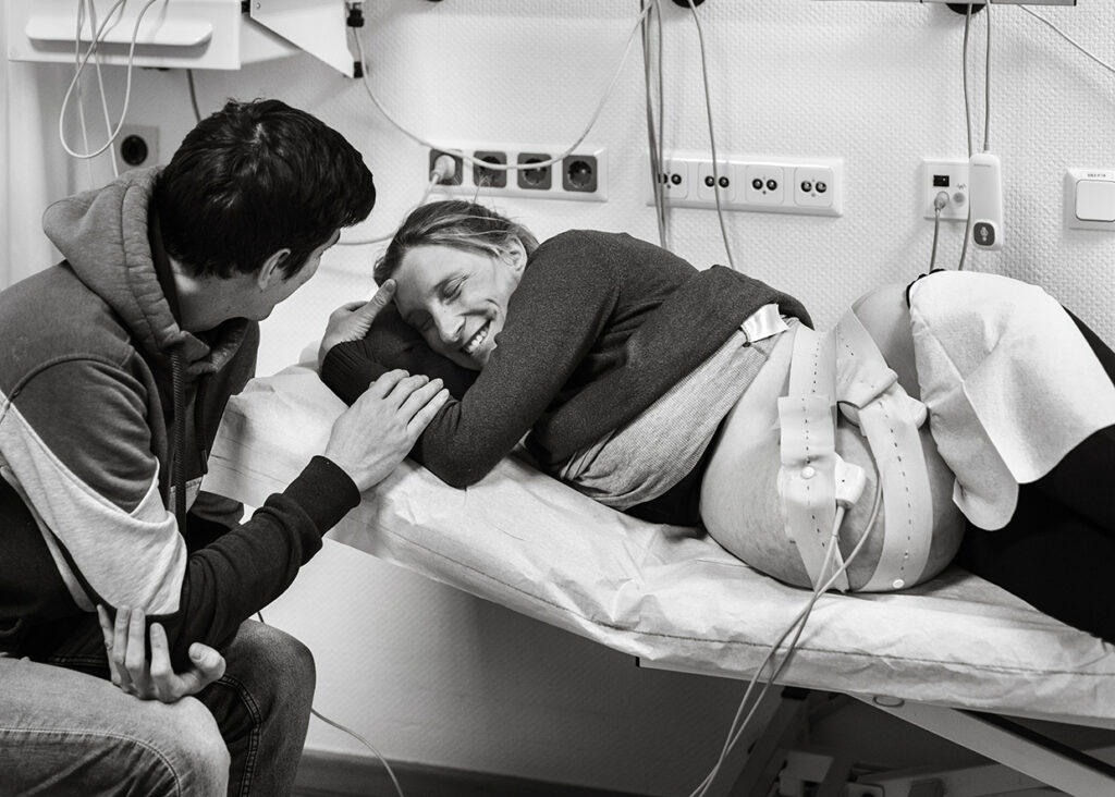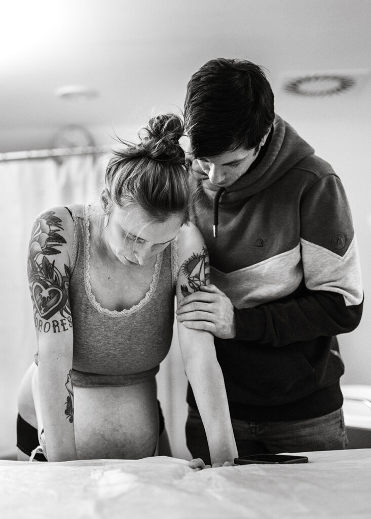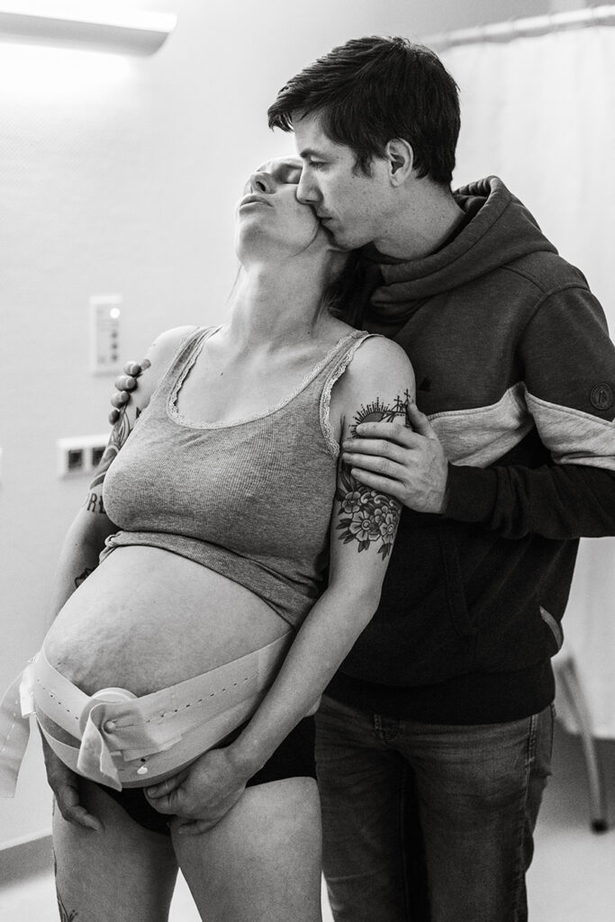Nach den ersten Untersuchungen ging es direkt in den Kreißsaal. Anfangs wurde zwischen den Wehen viel erzählt, gelacht, Musik gehört und dazu gesungen. Dann wurden die Wehen immer intensiver, es wurde immer ruhiger und fokussierter. Schon bevor das kleine Wunder auf der Welt war, war die Liebe der beiden so präsent in all den kleinen und großen Gesten.