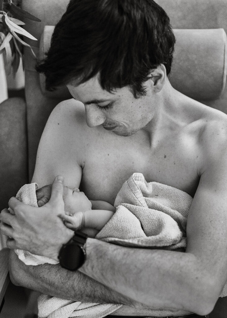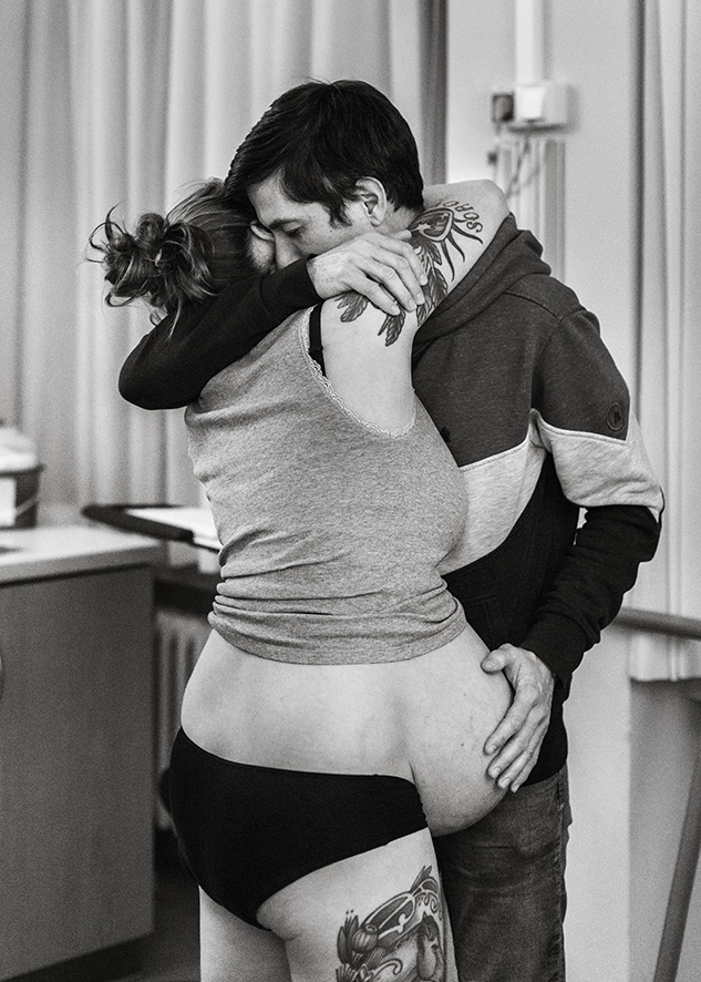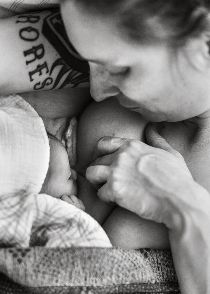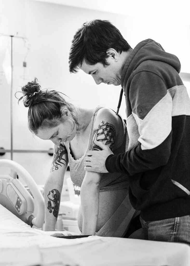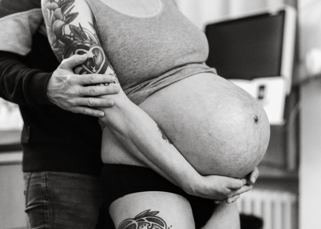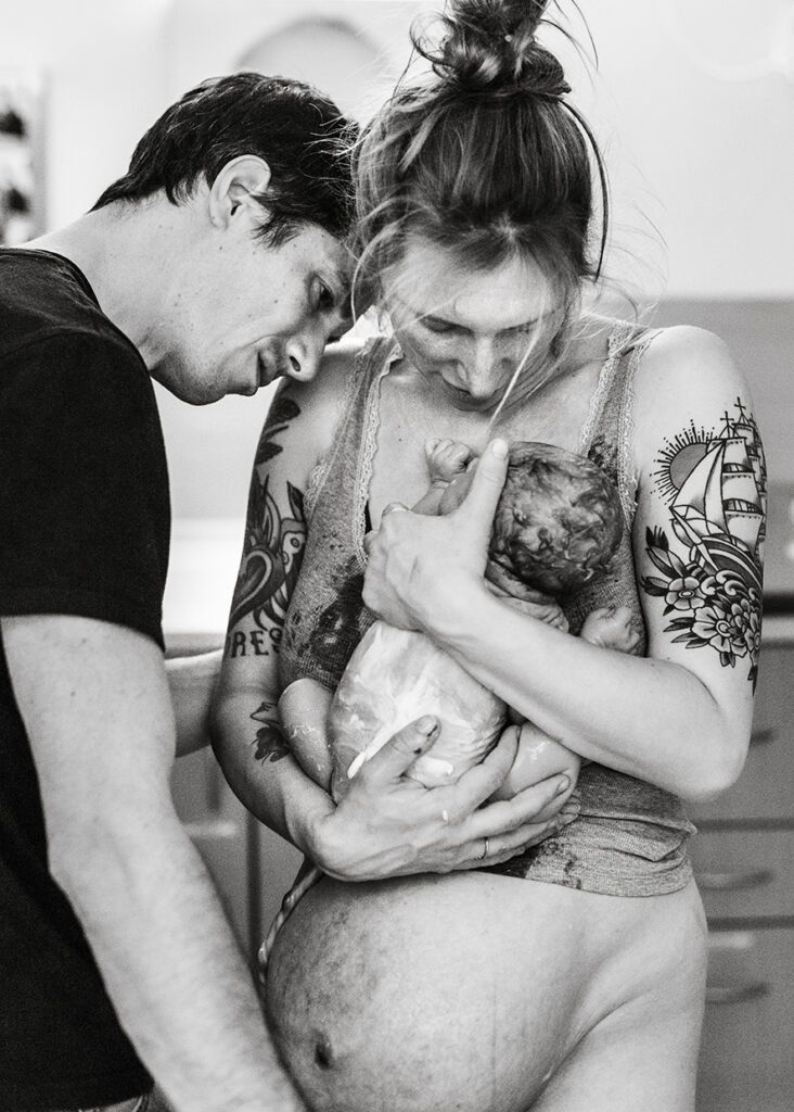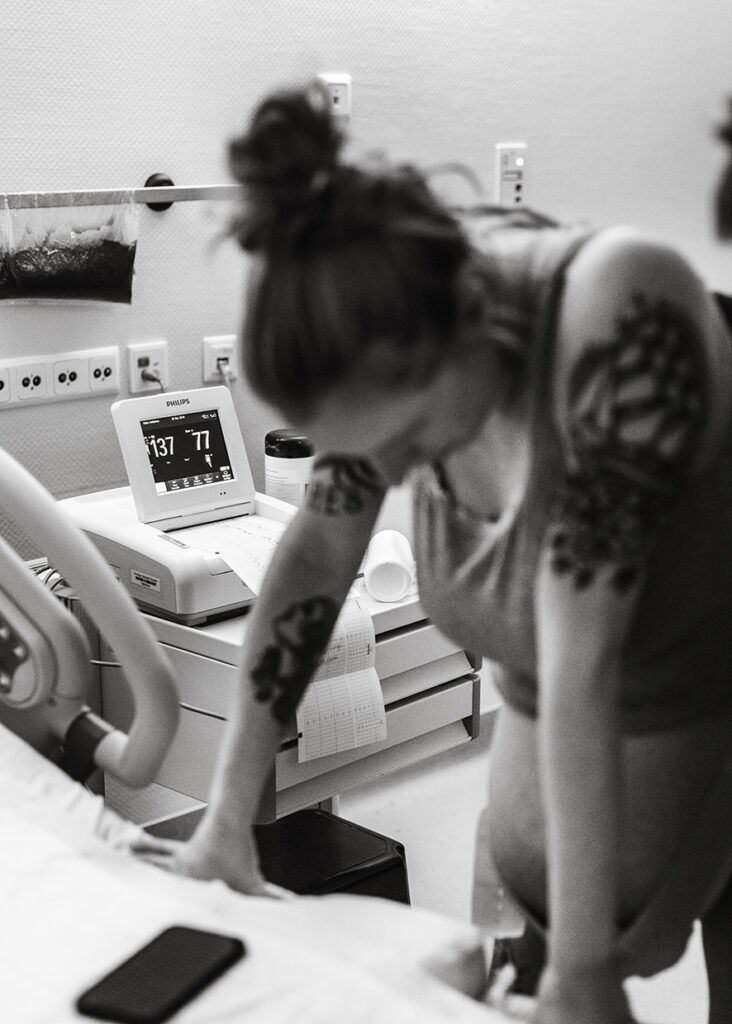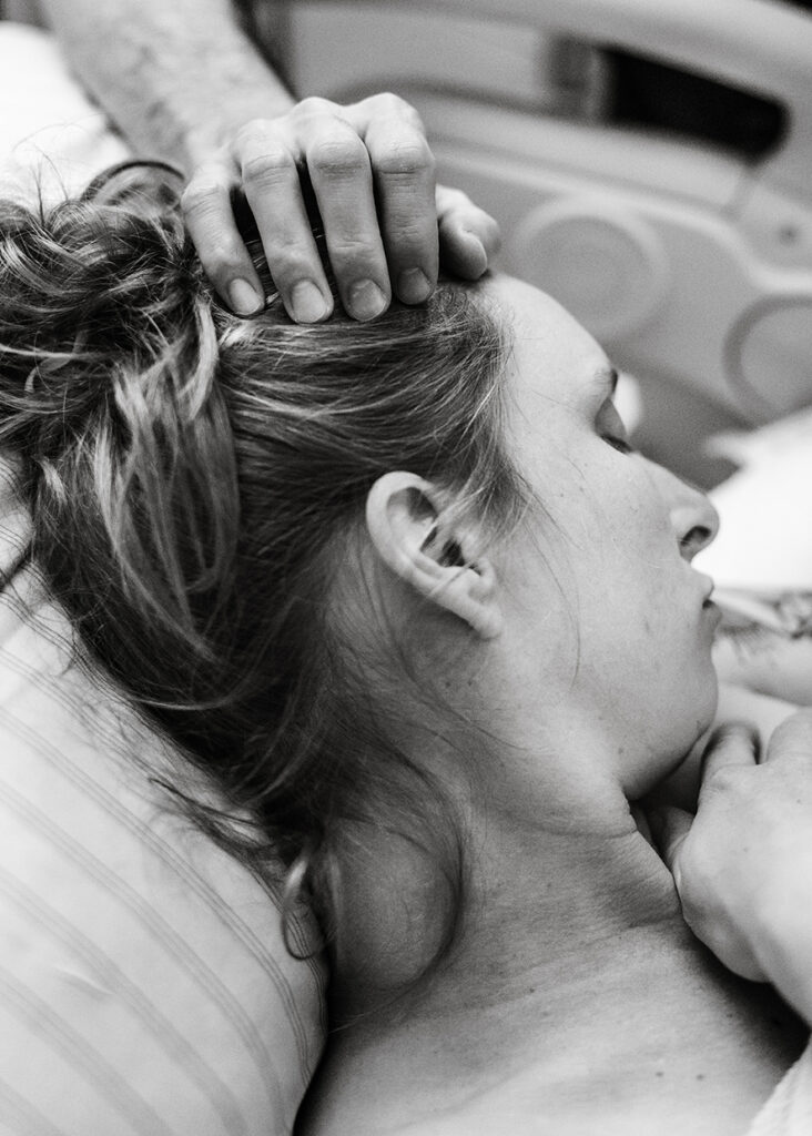 Nach den ersten Untersuchungen ging es direkt in den Kreißsaal. Anfangs wurde zwischen den Wehen viel erzählt, gelacht, Musik gehört und dazu gesungen. Dann wurden die Wehen immer intensiver, es wurde immer ruhiger und fokussierter. Schon bevor das kleine Wunder auf der Welt war, war die Liebe der beiden so präsent in all den kleinen und großen Gesten.