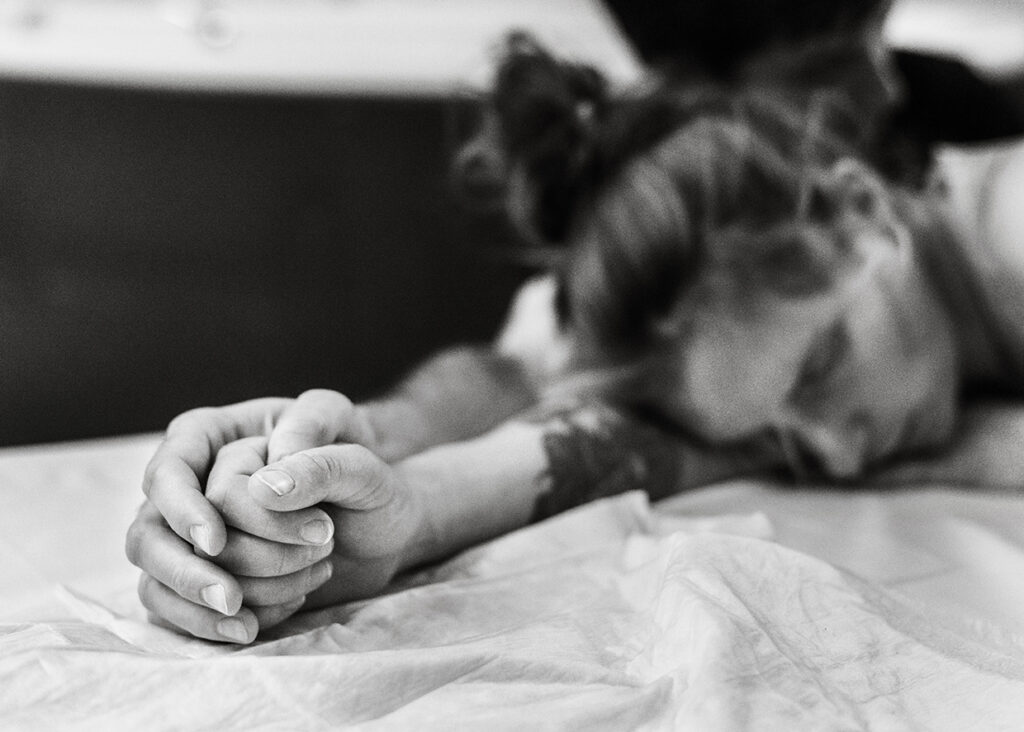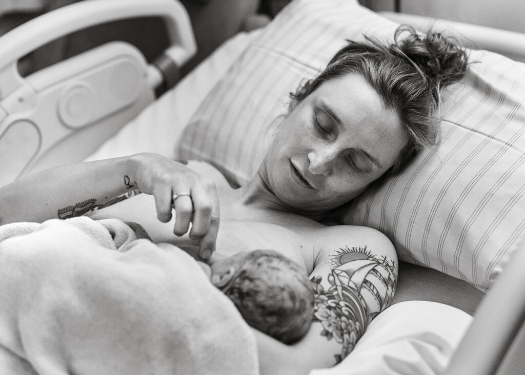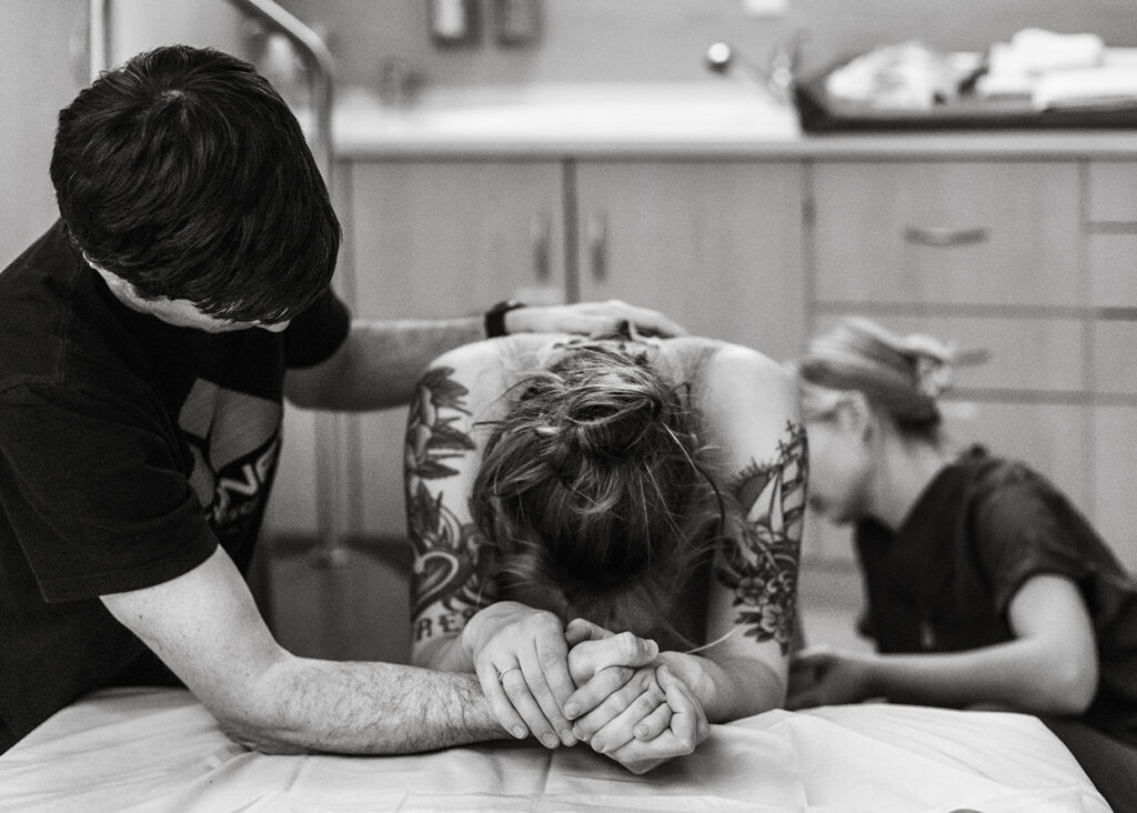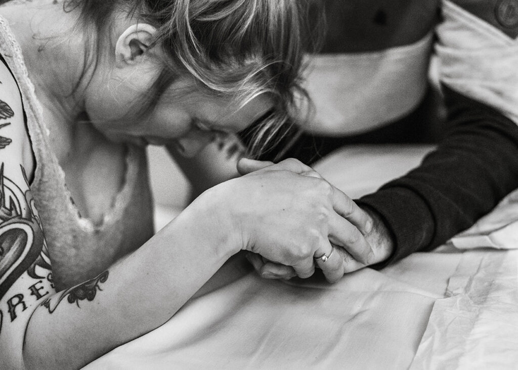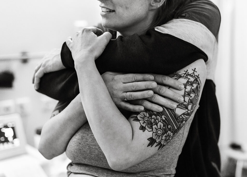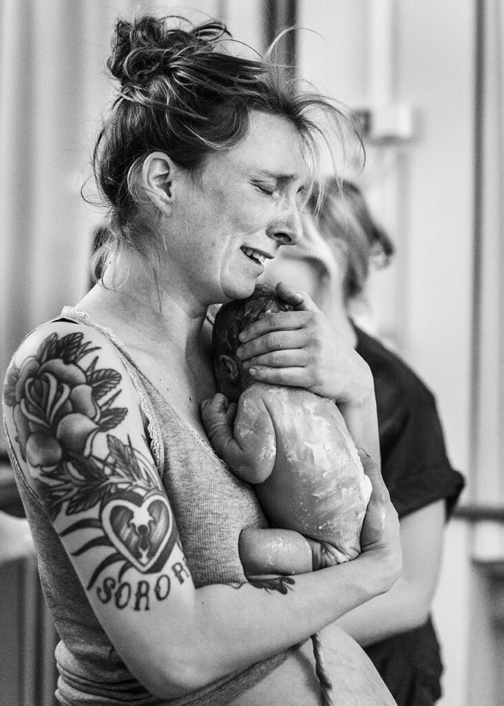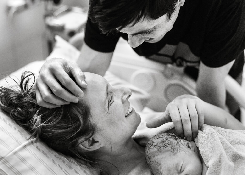 Nach den ersten Untersuchungen ging es direkt in den Kreißsaal. Anfangs wurde zwischen den Wehen viel erzählt, gelacht, Musik gehört und dazu gesungen. Dann wurden die Wehen immer intensiver, es wurde immer ruhiger und fokussierter. Schon bevor das kleine Wunder auf der Welt war, war die Liebe der beiden so präsent in all den kleinen und großen Gesten.